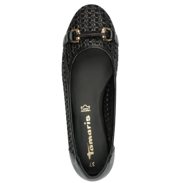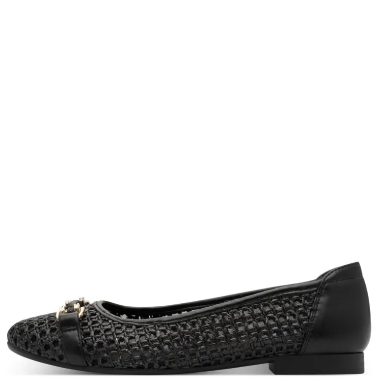 Meget fine ballerina sko fra Tamaris i sort flet. Skoen har fine detaljer fortil, og er fantastiske at have på.