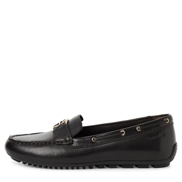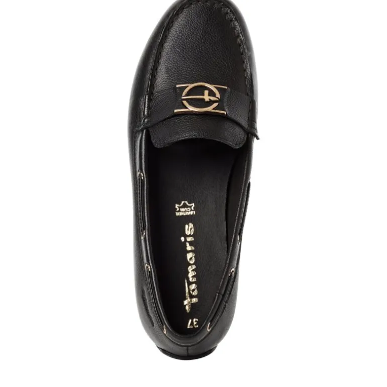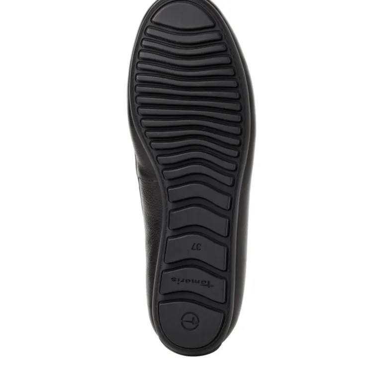 Meget lækker og komfortabel hyttesko fra Tamaris i sort skind. Skoen har en fin lille logo detalje fortil i guld. Sålerne er smør bløde, og de sidder perfekt. De lækre såler er udtagelige, og kan skiftes ud