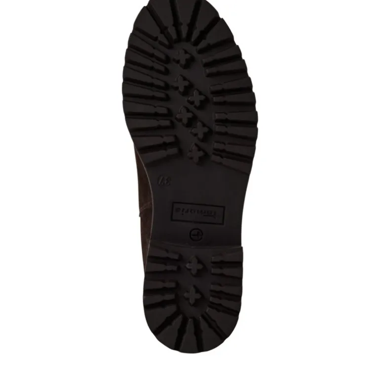 Den fantastiske populære støvle fra Tamaris er nu lavet i den smukke mørkebrune ruskind. En chelsea støvle med elastik i siderne, på en meget blød og komfortabel gummisål.