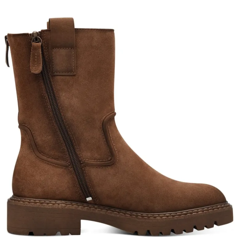 Meget skøn støvle fra Tamaris i camel farvet ruskind. Støvlerne har lynlåse på indersiden, gummisåler og en lækker let foring indvendigt.