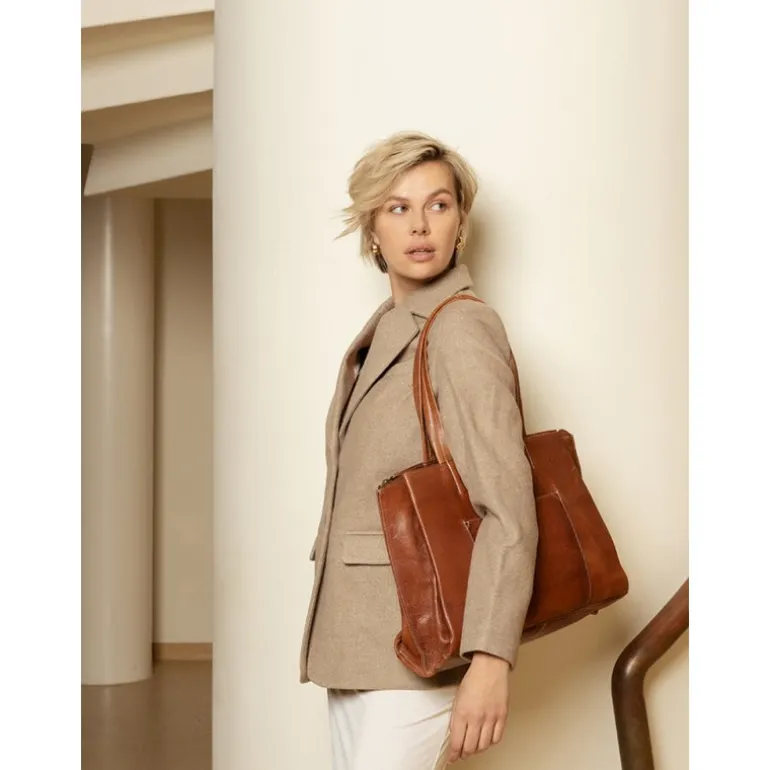 Tasken ‘Eliana’ fra RE:DESIGNED er den perfekte arbejdstaske til kvinder- Denne taske har mange praktiske lommer indvendigt, og en rum til computer samt andre ting. Tasken har en justerbar skulderrem, der giver komfort til hverdagsbrug. Kan bruges til alting, og har plads til det meste.
