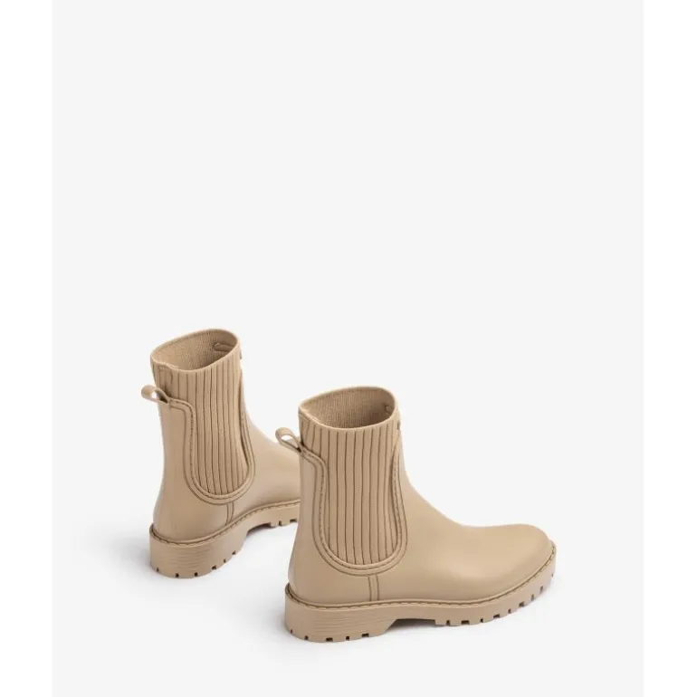 Rigtig lækre og smarte gummistøvler i beige fra Unisa. Støvlerne har en lille “sok elastik” i siderne, og en udtagelig sål med “super soft” teknologi i. Rigtig god komfort, og en pæn gummistøvle.