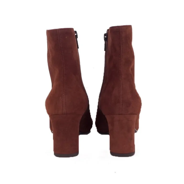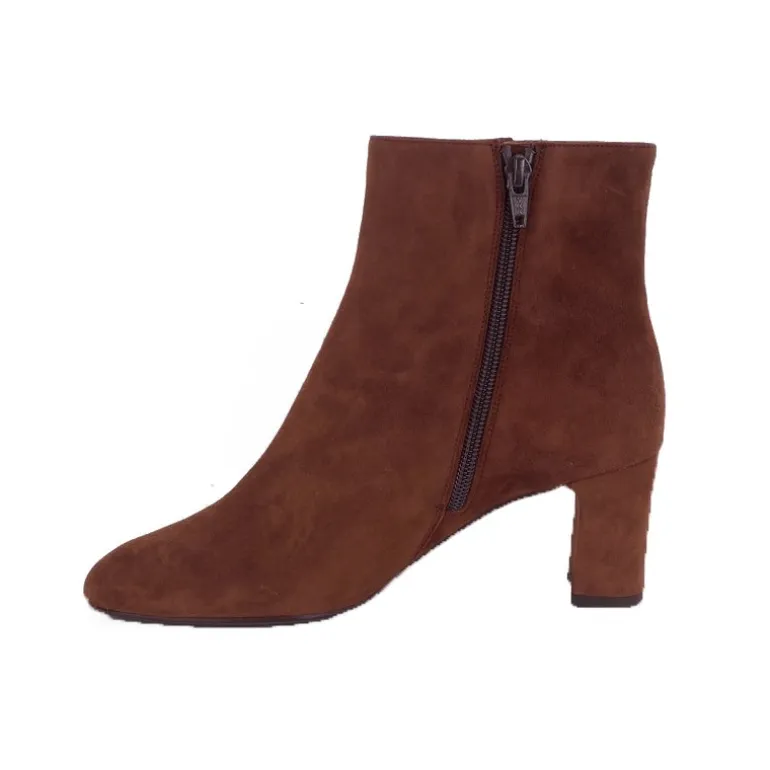 Klassisk og elegant ankelstøvle fra Unisa i en flot brun ruskind. Støvlen har rund snude, en flot hæl på 6,5 cm og lynlåse på ydersiden.