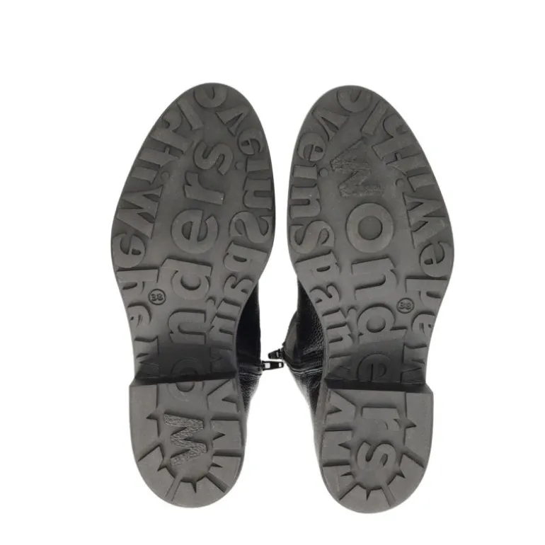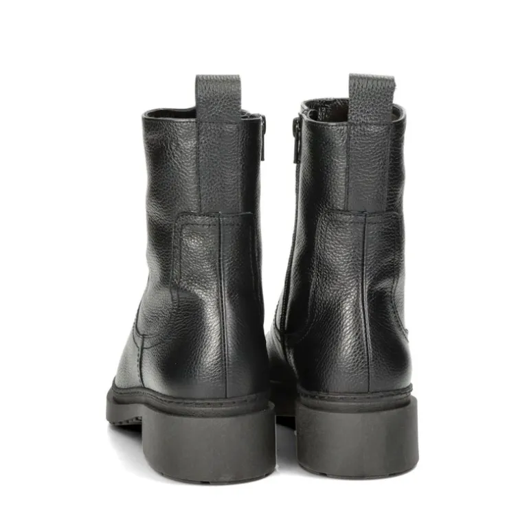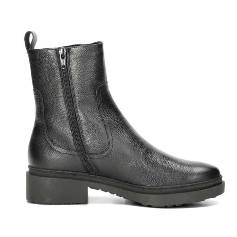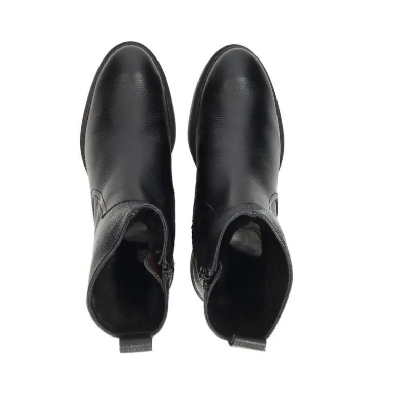 Super lækker vinterstøvle i sort skind, med pelsfoer indvendigt. Støvlen har lækre gummisåler, som er slidstærke og isolerer godt.